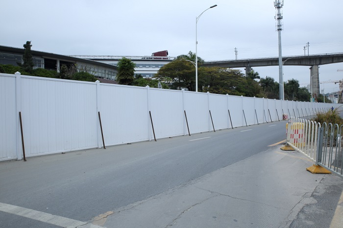 5、PVC圍擋使用者應(yīng)定期檢查,如有開裂、沉降、傾斜等危險(xiǎn)情況,應(yīng)立即采取相應(yīng)的加固措施。廣告牌不得靠近輕質(zhì)圍擋板(如PVC圍擋)豎立。如確需搭設(shè),應(yīng)力系應(yīng)獨(dú)立設(shè)計(jì)計(jì)算。